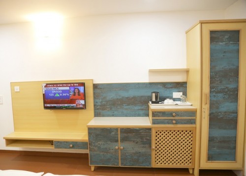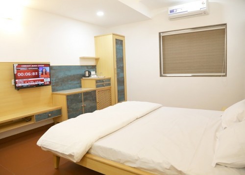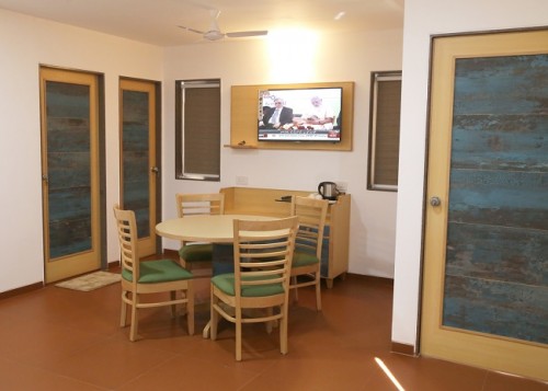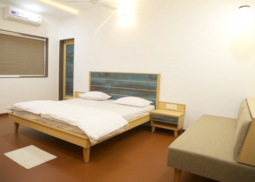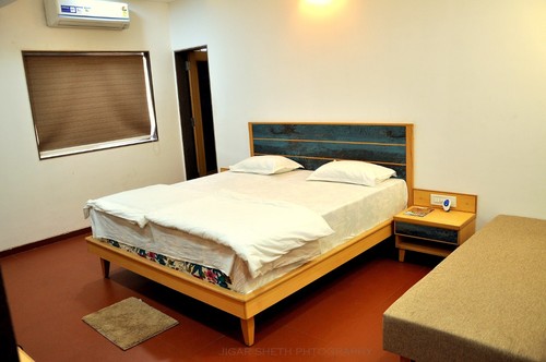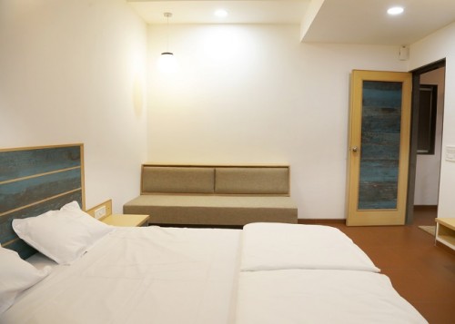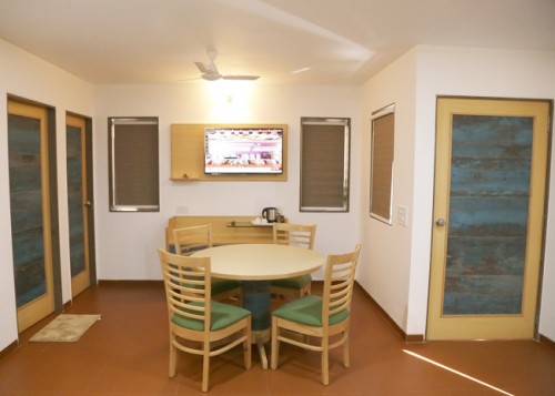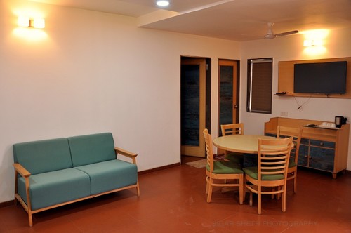 Jewel of Navdeep Resort - Ultra modern furnished living room having green grass covered balcony with separate dining space, LED television, sitting area and bathroom. Master bedroom features modern décor, king size bed, LED television and bathroom. Other amenities consist of intercom, mini fridge, electronic safe and tea kettle. Can accommodate maximum 3 persons.