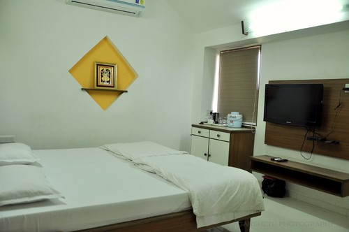 Air conditioned dining hall to accommodate 50 persons at a time serving authentic Gujarati cuisine, snacks, tea & coffee